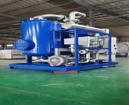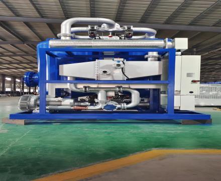 吸附劑的冷卻階段來氣體自環(huán)境大氣,鼓風機正轉(zhuǎn)來氣體自環(huán)境大氣作為冷量載體經(jīng)過冷卻器冷卻形成冷量流體對被加熱的吸附劑加以吹冷,這股吹冷用的冷量流體帶走吸附劑的熱量后,由排氣孔排出,冷卻到一定程度后鼓風機反轉(zhuǎn),利用吸附塔內(nèi)殘留的空氣作為冷量流體在吸附塔內(nèi)進行內(nèi)循環(huán)冷吹,這種吹冷方式不存在浪費壓縮空氣的問題。